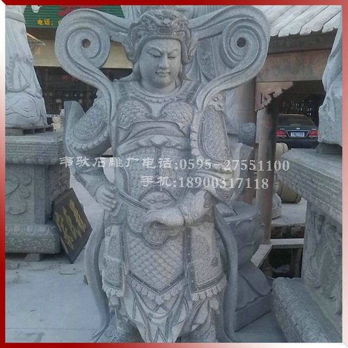 4、韋陀:韋陀菩薩是佛的護(hù)法神(佛教中另外還有一位護(hù)法天神韋天將軍)。相傳他姓韋名琨,是南方增長天王屬下八大神將之一,位居32員神將之首(四大天王每人手下有八神將)。據(jù)說,在釋迦佛入涅時(shí),邪魔把佛的遺骨搶走,韋陀及時(shí)追趕,奮力奪回。因此佛教便把他作為驅(qū)除邪魔,保護(hù)佛法的天神。從宋代開始,中國寺廟中供奉韋陀,稱為韋陀菩薩,常站在彌勒佛像背后,面向大雄寶殿,護(hù)持佛法,護(hù)助出家人。