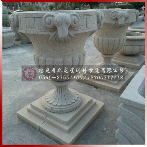 埃及米黃花缽-房地產(chǎn)樓盤小區(qū)石雕案例高清圖