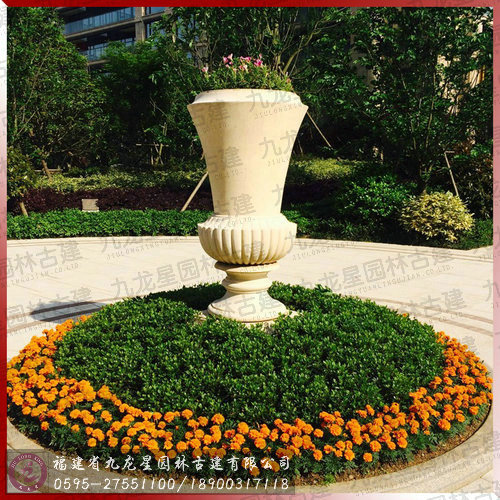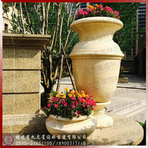 埃及米黃花缽-房地產(chǎn)樓盤小區(qū)石雕案例高清圖