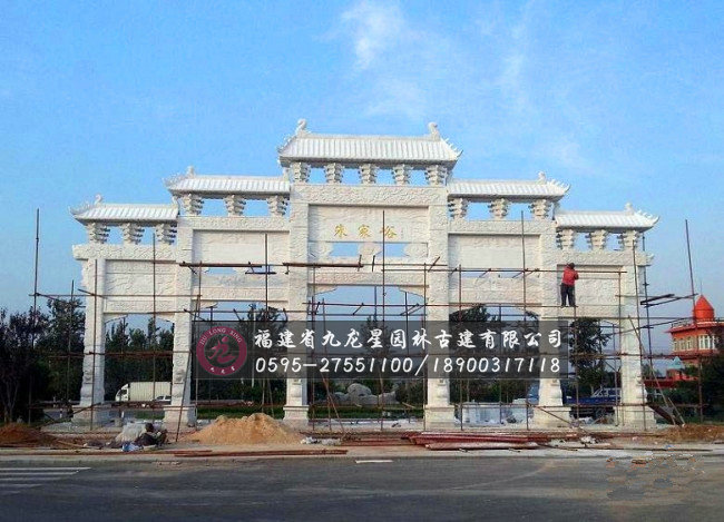 石雕牌坊,也叫石雕牌樓、山門(mén),漢族特色建筑文化之一。最早見(jiàn)于周朝,最初用于旌表節(jié)孝的紀(jì)念物,后來(lái)在園林、寺觀(guān)、宮苑、陵墓和街道均有建造,北京是中國(guó)牌樓最多的城市。石雕牌坊用各種石料來(lái)進(jìn)行塑造,創(chuàng)造出具有一定空間的可視、可觸的建筑裝飾物,借以反映社會(huì)生活、表達(dá)意義。