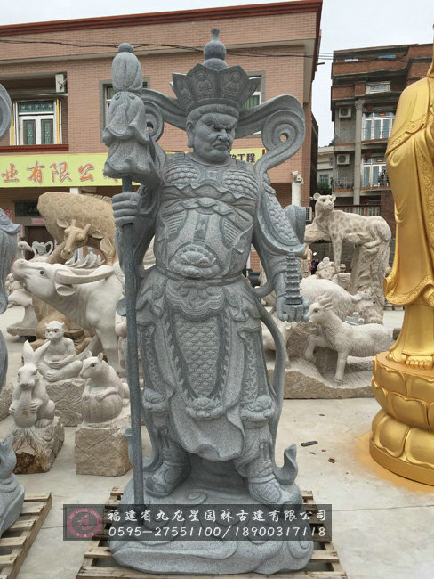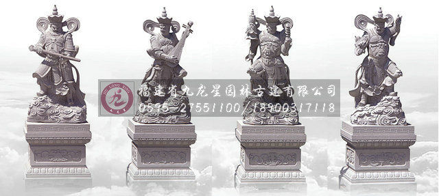 石雕四大天王通常被佛教視為四大門庭護(hù)法神將,他們分別是南方增長(zhǎng)天王、東方持國(guó)天王、西方廣目天王、北方多聞天王。