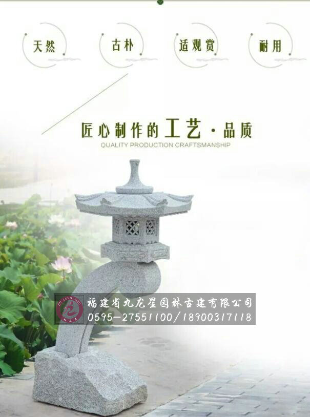石燈籠被用于園林,庭院的裝飾始于十六世紀(jì)晚期的安土桃山時代,當(dāng)時由于茶道的大發(fā)展,石燈籠常被作為茶室的一種露天裝飾物而廣泛進(jìn)入庭院裝飾,隨著,石燈籠用途的改變,石燈籠的樣式也就更加多樣化了,例如出現(xiàn)了三腳或四腳的雪見燈籠,同時對竿和笠的部分也給予新的設(shè)計,石燈籠的樣式由模仿進(jìn)入創(chuàng)新,日本的石燈籠除了少量用于寺院神社以外,大多數(shù)的石燈籠是用于庭院、園林裝飾使用。