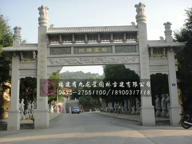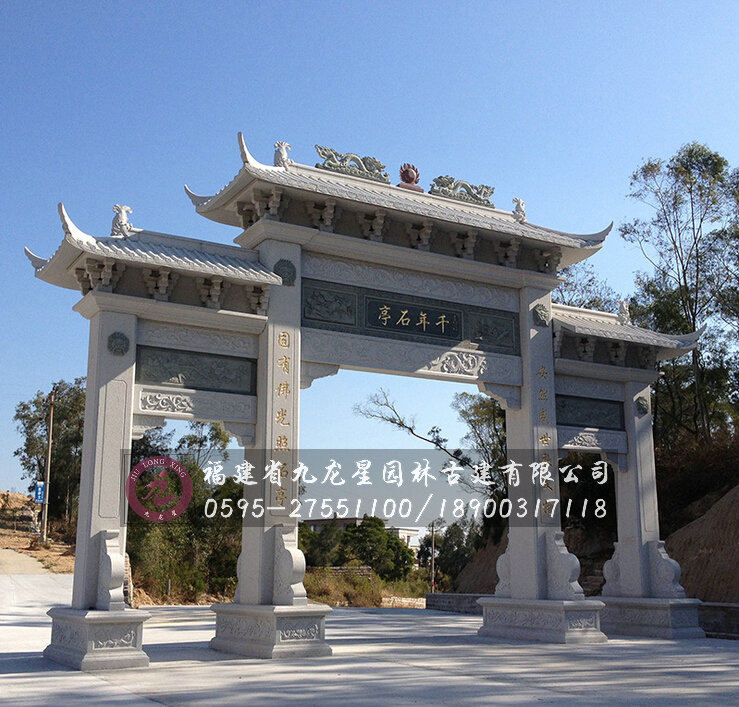 石雕牌坊即石頭修建的牌坊,是一種裝飾建筑物,也是雕刻藝術(shù)的一種。常見于古代陵園,如北京明代陵墓外面的大紅門前,有石牌坊一座,整個牌坊為五間六柱十一樓,結(jié)構(gòu)勻稱和諧,造型美觀大方?,F(xiàn)代石牌坊常用于村鎮(zhèn)入口,寺廟景區(qū)入口等。主要作為標志性的裝飾建筑物,在設(shè)計上也沒有古建石雕牌坊那么講究。
