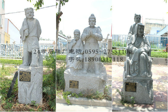 《二十四孝》的編者是元代福建延平府尤溪縣的郭居敬。他曾選輯虞舜以下二十四位孝子的感人故事,為每個故事配上一首詩,用來做兒童的啟蒙讀物,《二十四孝》的名稱便是由此而來?!抖男ⅰ饭适戮幎ǔ蓵?古人把孝道列為社會教化的一項重要內(nèi)容,鼓勵人們“老吾老以及人之老,幼吾幼以及人之幼”,已經(jīng)在我國流傳數(shù)百年,幾乎達到了家喻戶曉的程度,對國人的倫理道德產(chǎn)生了不可低估的影響。九龍星園林古建加工的二十四孝石雕像栩栩如生,將中國古代的孝賢及其事跡呈現(xiàn)出來,就是為了讓孝道文化這一傳統(tǒng)文化在新時代得以發(fā)揚光大,進一步弘揚和傳承中華民族尊老、敬老、愛