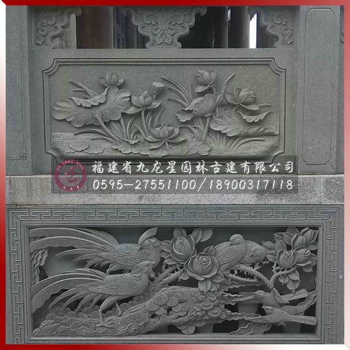 惠安石雕欄桿花草鳥獸圖案由九龍星園林古建有限公司雕刻生產(chǎn)加工。