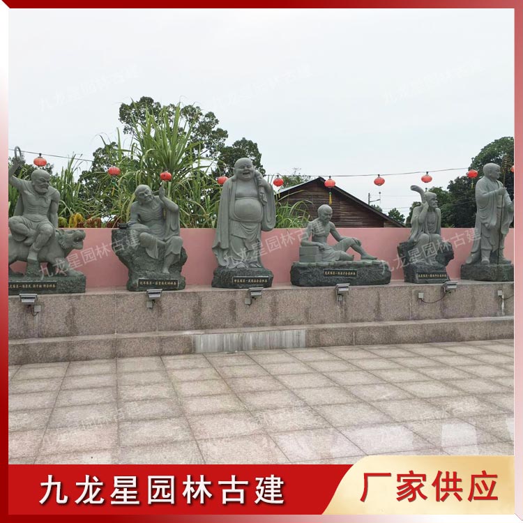 十八羅漢規(guī)格:站羅漢高度為218cm,坐羅漢高度比站羅漢略低,適當(dāng)調(diào)整比例