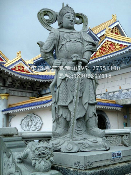 韋馱菩薩像常威武地立于最靠近寺院門(mén)口的四天王殿內(nèi),面向寺院,以守護(hù)道場(chǎng)。其形像大多為身穿甲胄的雄壯武將,手持金剛杵,或以杵柱地,或雙手合十,將杵擱于肘間。韋馱菩薩現(xiàn)天大將軍身?yè)?dān)當(dāng)佛教中驅(qū)除邪魔,保護(hù)佛法的重任,為佛教中護(hù)法金剛力士的代表之一.