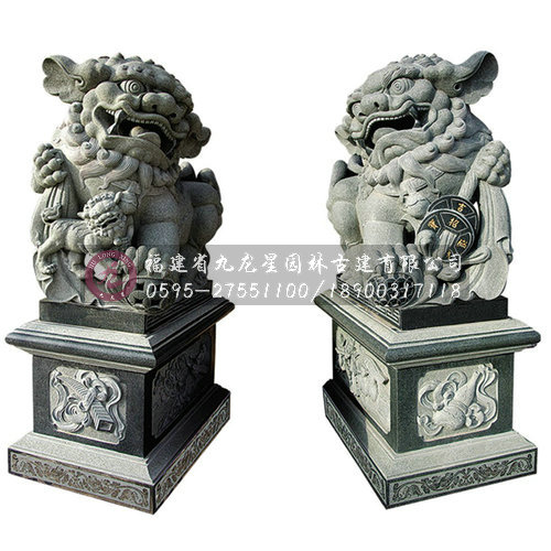 獻錢獅是因石獅造型前一般常飾一串古錢而得名,它是南方石獅當(dāng)中的一種造型。獻錢獅寓有招財進寶之意,造型可愛乖巧,富有靈性。它是漢族民間最為常見的一種石獅造型之一,常擺放于寺廟或是祠堂門前。獻錢獅一般也為雌雄一對,雄獅常飾于大串的銅錢,寓意招財進寶。而雌獅則戲玩著小獅 子,寓意人丁興旺之意。