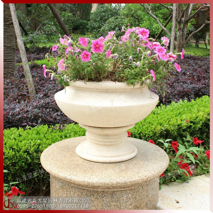 九龍星園林古建打造高顏值埃及米黃石材花缽,現(xiàn)代簡約風格,造型各異,質感柔美,適用于景區(qū)、廣場、庭院、房地產景觀裝飾。