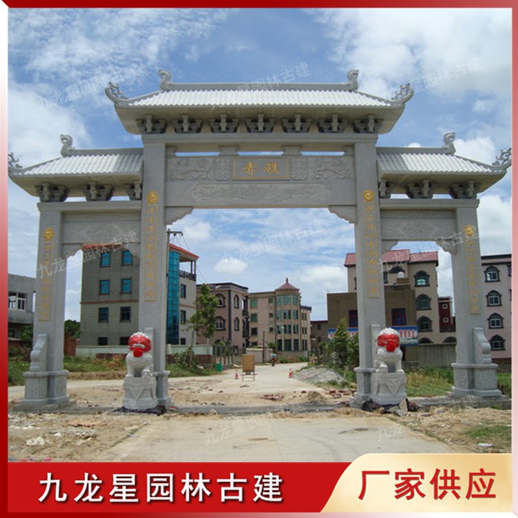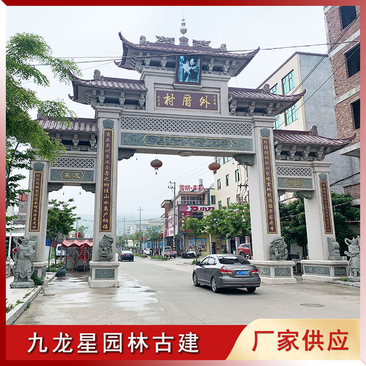 現(xiàn)代村莊牌坊建設(shè) 村口石牌坊圖片 廠家石雕定制 九龍星