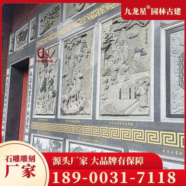 青石浮雕畫春夏秋冬圖案 寺廟浮雕墻石雕刻 九龍星